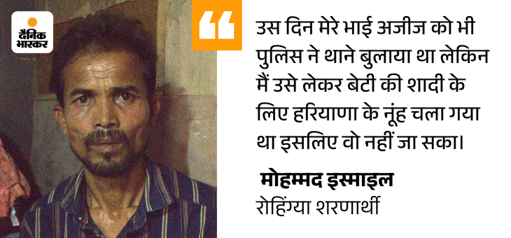 दिल्ली के शाहीन बाग की श्रम कॉलोनी… बायोमेट्रिक के लिए पुलिस थाने बुलाया, फिर घर नहीं लौटी बेटी-बहन 2017 में म्यांमार के रखाइन स्टेट में रोहिंग्या कम्युनिटी के खिलाफ हिंसक घटनाएं शुरू हुईं। इसके बाद रोहिंग्याओं को घर छोड़कर बांग्लादेश, भारत और दूसरे देशों में शरण लेनी पड़ी। मोहम्मद इस्माइल भी उन्हीं में से एक हैं। वो और उनके परिवार के लोगों ने मलेशिया, बांग्लादेश और भारत में शरण ली थी। इस्माइल अपने माता, पिता, बहन, पत्नी और बच्चों के साथ भारत आ गए। वे दिल्ली के शाहीन बाग की श्रम कॉलोनी में रह रहे हैं। इस्माइल भारत के शुक्रगुजार हैं कि पिछले 8 साल से वो बिना किसी परेशानी के रह रहे हैं।