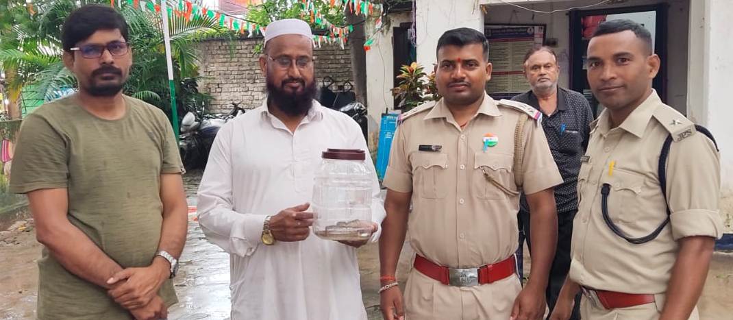 तथा वाइल्डलाइफ कंसर्वशनिस्ट रमेश महतो जब थाना पहुंचे तो थाना प्रभारी मधुसूदन मोदक की उपस्थिति में हाजी मो0 हासिम से उक्त सांप को वाइल्डलाइफ कंसर्वशनिस्ट को ज़िंदा सौफ दिया। वाइल्डलाइफ कंसर्वशनिस्ट ने सांप के बारे में थाना प्रभारी एवं अन्य सभी लोगो को विस्तृत जानकारियां दिए। उक्त अवसर पर पु0अ0नि0 प्रदीप केशरी, मो0 कमालउद्दीन, इज़राईल खान आदि मौजूद थे।