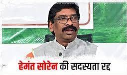 झारखंड के CM हेमंत सोरेन की विधानसभा की सदस्यता रद्द कर दी गई है। सूत्रों के अनुसार ऑफिस ऑफ प्रॉफिट मामले को लेकर राज्यपाल ने सोरेन की विधानसभा सदस्यता रद्द करने की अनुशंसा कर दी है। सोरेन के CM रहते हुए खदान लीज का पट्‌टा लेने के मामले में चुनाव आयोग ने गुरुवार को राज्यपाल से उनकी सदस्यता रद्द करने की सिफारिश की थी।