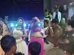 जानकारी के मुताबिक महाराजपुर थाना के नरायनपुर गांव में 11 मार्च को ग्राम प्रधान के बेटे का जन्मदिन था इस खुशी में अश्लील डांस का आयोजन किया गया था । हद तो तब हो गई जब महाराजपुर थानाध्यक्ष सतीश कुमार राठौर अपने दल बल के साथ समारोह में शामिल हुए और अश्लील डांस करते बार बालाओं के नृत्य का पूरा मजा लिया ।