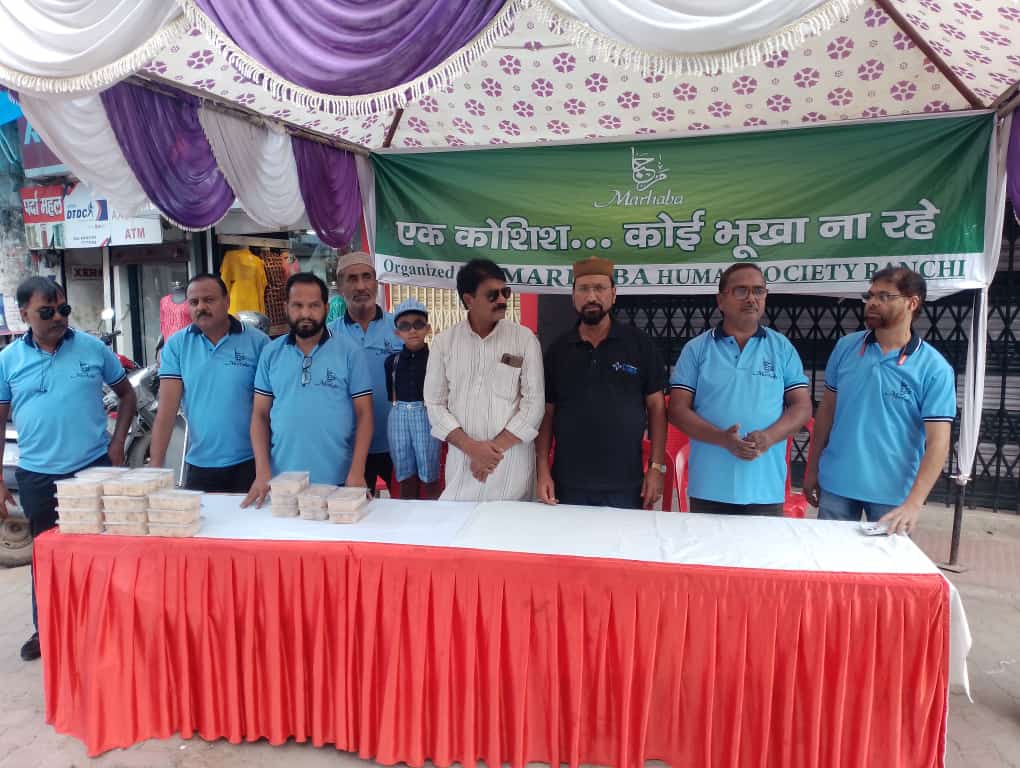 मरहबा ह्यूमन सोसाइटी के द्वारा मेन रोड स्थित अंजुमन प्लाजा के सामने ” एक कोशिश कोई भूखा न रहे” अभियान के तहत राहगीरों, रिक्शा चालकों, ठेला लगाने वाले जरूरत मंद लोगों के बीच भोजन वितरण लगातार पांचवें हफ्ते भी जारी रहा, मालूम हो कि मरहबा ह्यूमन सोसायटी के द्वारा पिछले पांच सप्ताह से वैसे लोग जो दिन भर रिक्शा चला कर मजदूरी करके अपने घर को चलाते है और जिन्हें अपने खाने की फिकर कम घर वालों को खिलाने की सोच में दिन भर मेहनत मजदूरी करते हैं वैसे लोगो के बीच प्यार के साथ एक वक्त का भोजन मुहैया कराने की कोशिश कर रही है।