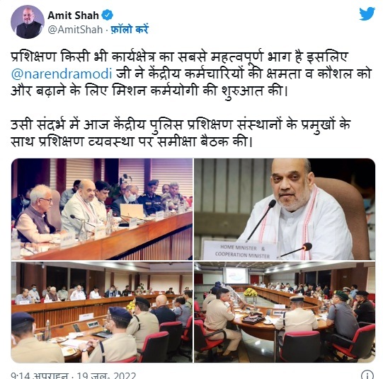 केंद्रीय गृहमंत्री अमित शाह ने मंगलवार को कहा कि समय के साथ पुलिसकर्मियों के प्रशिक्षण में बदलाव किया जाना चाहिए। उन्होंने इस बात पर जोर दिया कि आधुनिक तकनीकों के साथ-साथ देशभक्ति, अनुशासन और संवेदनशीलता की भावना पैदा करने की जरूरत है।  शाह ने केंद्रीय पुलिस प्रशिक्षण संस्थानों की समीक्षा बैठक की अध्यक्षता करते हुए कहा कि पुलिस बलों के प्रशिक्षण में प्रौद्योगिकी और आधुनिक उपकरणों का इस्तेमाल समय की जरूरत है लेकिन साथ ही बुनियादी पुलिसिंग पर ध्यान दिया जाना चाहिए और इसे व्यवहार में लाना चाहिए।