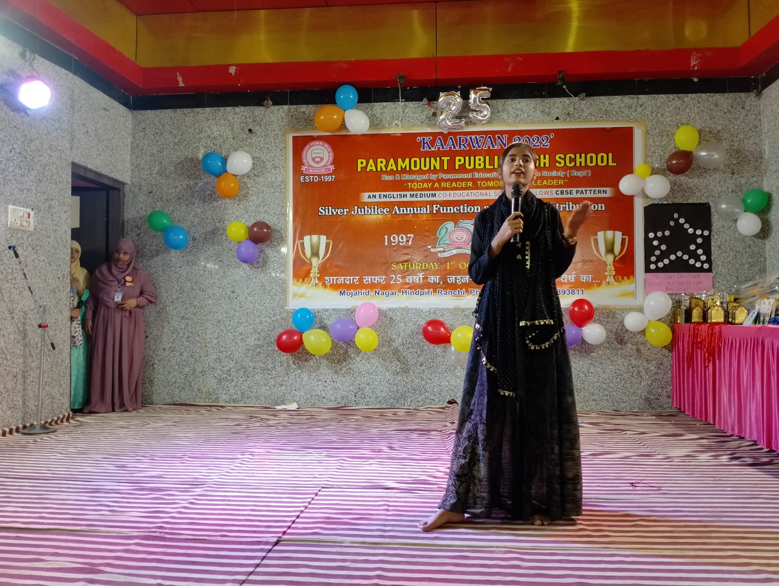 अंजुमन प्लाजा सभागार में पैरामाउंट पब्लिक स्कूल ने अपना 25वा सालाना कार्यक्रम और प्राइस डिस्ट्रीब्यूशन समारोह मनाया, सिल्वर जुबली कार्यक्रम के मुख्य अतिथि के तौर पर अंजुमन इस्लामिया के सदर मुख्तार अंसारी और गेस्ट ऑफ ऑनर के तौर पर मंजर इमाम शामिल हुए सिल्वर जुबली कार्यक्रम में मुख्य अतिथि के द्वारा स्कूल का फ्लैग लहरा कर कार्यक्रम की शुरुआत की गई और साथ में पैरामाउंट गीत भी स्कूल की तारीफ में बयान की गई !
