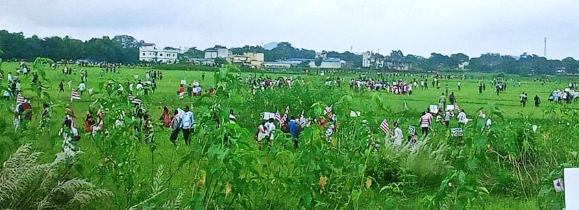 आंदोलनकारी किसान, आदिवासी महिला पुरुष दिशोम गुरु शिबू सोरेन का मुखौता लगाकर खेतो की पगडंडी होते हुए रिम्स-2 की जमीन पर पहुंच गए. वहां पहुंचे लोग खेतों में हल चलाने और रोपा रोपने लगे. इस आंदोलन में शामिल होने के लिए लातेहार, लोहरदगा, बिजुपाड़ा, हातमा, व बेड़ों समेत कई इलाकों से सैंकड़ों ग्रामीण खेतिहर जमीन बचाने के लिए पहुंचे है. जानकारी के मुताबिक खेत जोतो अभियान का आयोजन सरना प्रार्थना सभा की अगुवाई में किया गया था. सभा के चंपा कुजूर ने आरोप लगाया कि प्रशासन ने आंदोलनकारियों पर आंसू गैस के गोले छोड़े और बर्बरता की है. उन्होंने कहा कि सरकार आदिवासी समिति पर लगातार अत्याचार कर रही है.
