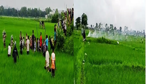 नगड़ी में माहौल तनावपूर्ण ! खेत में भारी संख्या में उतरी पुलिस…… ग्रामीणों को पुलिस ने खदेड़ा… छोड़े गए आंसू गैस के गोले