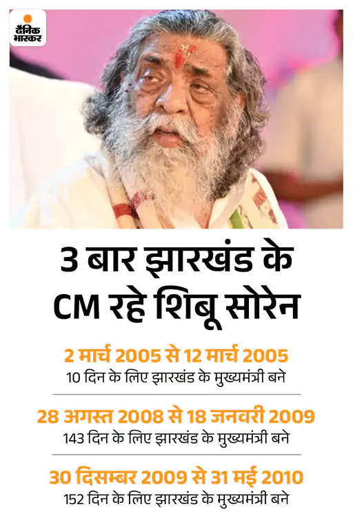 विधानसभा का मानसून सत्र भी अनिश्चितकाल के लिए स्थगित कर दिया गया है। झारखंड गठन में शिबू सोरेन की अहम भूमिका रही है, जो तीन बार सीएम, एक बार केंद्रीय मंत्री और आठ बार सांसद रहे।