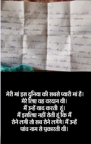 देश को रुला गई यह आखिरी चिट्ठी : सुसाइड करने वाली डॉक्टर अर्चना की 8 साल की बेटी का इमोशनल लेटर : मेरे लिए वरदान थी मेरी मां, मासूम का इमोशनल लेटर पढ़ कर पूरा देश फफक फफक कर रो पड़ा