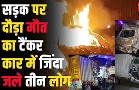 दर्दनाक हादसा : दीवाली से एक रात पहले सड़क पर दौड़ा मौत का टैंकर, कार से हुई भयानक टक्कर, जिंदा जले 3 लोग