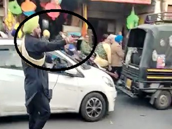 भीड़ भरी सड़क पर कार फंसी तो निकाली रिवॉल्वर; हवा में लहराकर लोगों को हटाया  | Punjab Amritsar Putlighar Market Revolver Video Update| Person Took Out  Revolver In Amritsar Traffic - Dainik Bhaskar